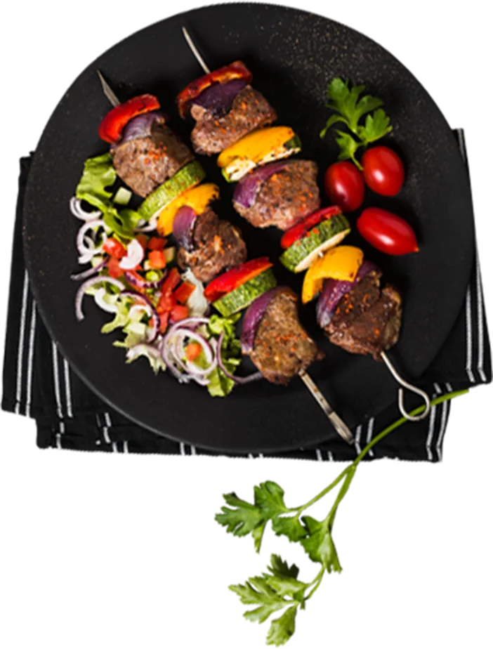 Grilled halloumi cheese skewers served with fresh vegetables.